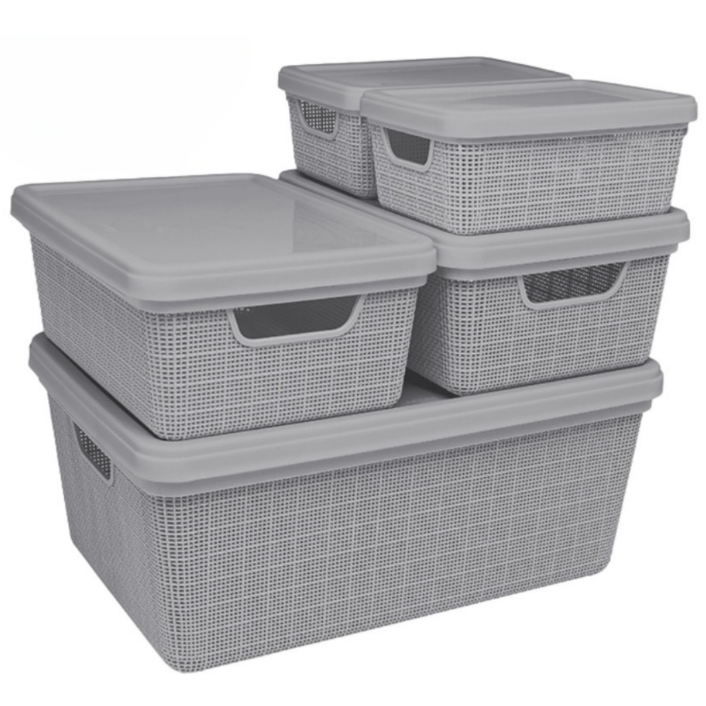 Kit 5 Caixa Organizadora Cesto com tampa grande em plástico em Promoção 1,8 L 5 L 15 L