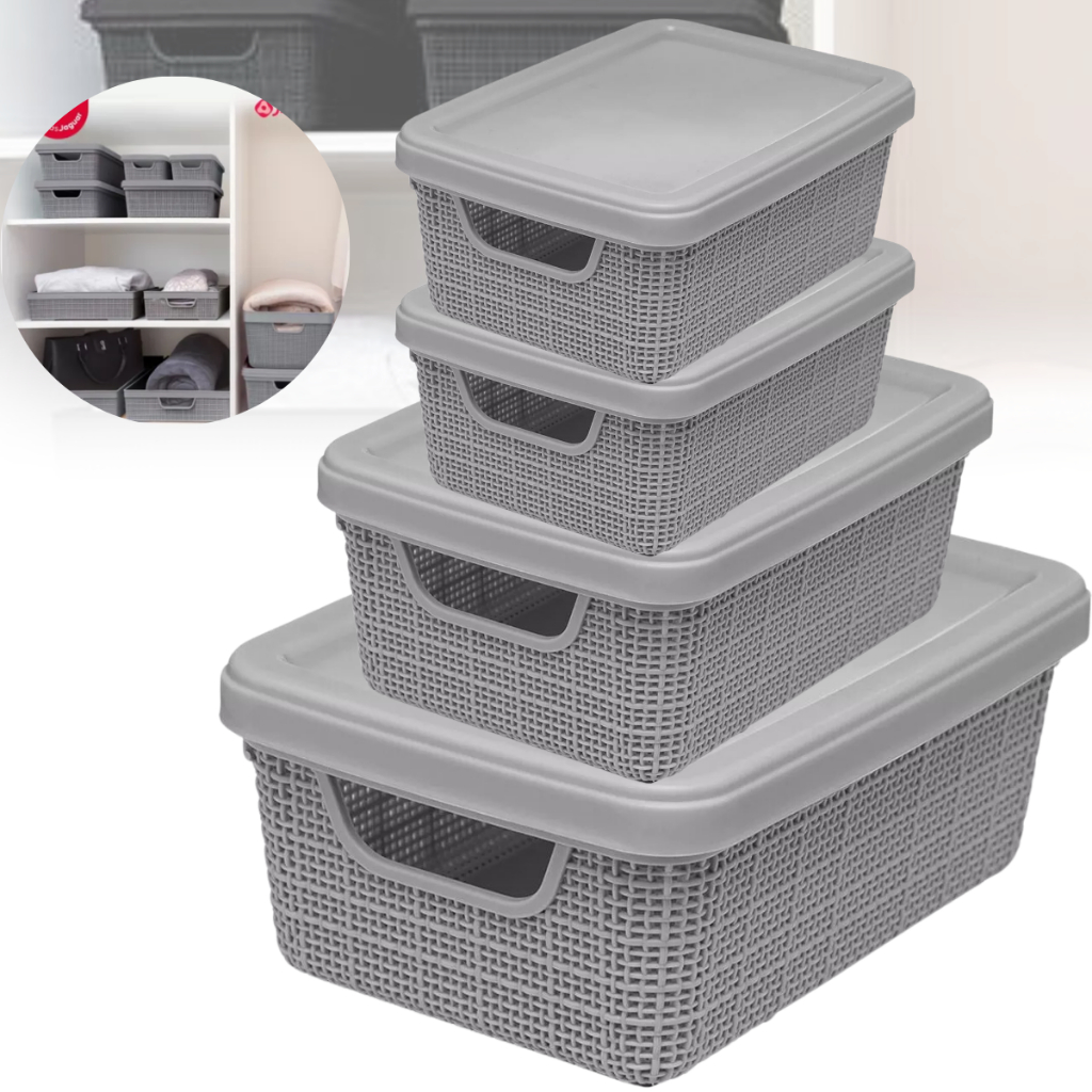 Kit 4 Caixa Organizadora Cesto com tampa grande em plástico em Promoção 1,8 L 5 L 15 L