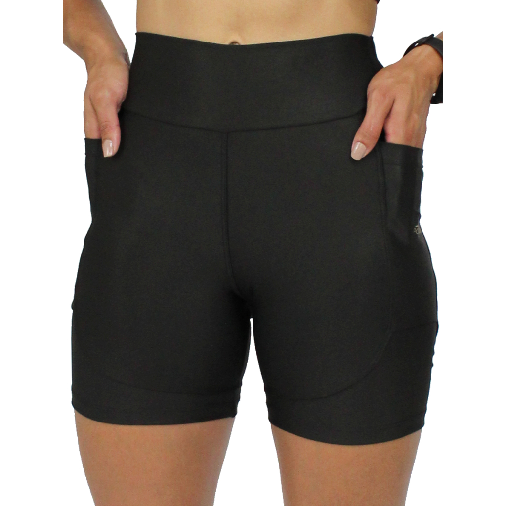 Shorts Feminino Fivela Curto Cintura Alta Malha Crepe com Bolso Elastano bermuda