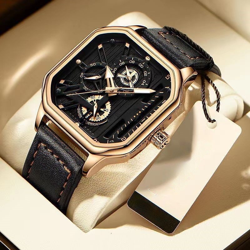 Novo Relógio Quadrado Masculino Cinto De Alta Beleza Relógios De Quartzo À Prova D'água