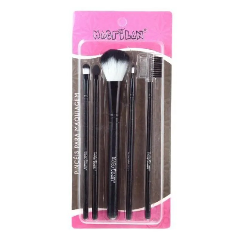 KIT COM 5 PINCéIS PARA MAQUIAGEM - MACRILAN - KP5-9 Preto