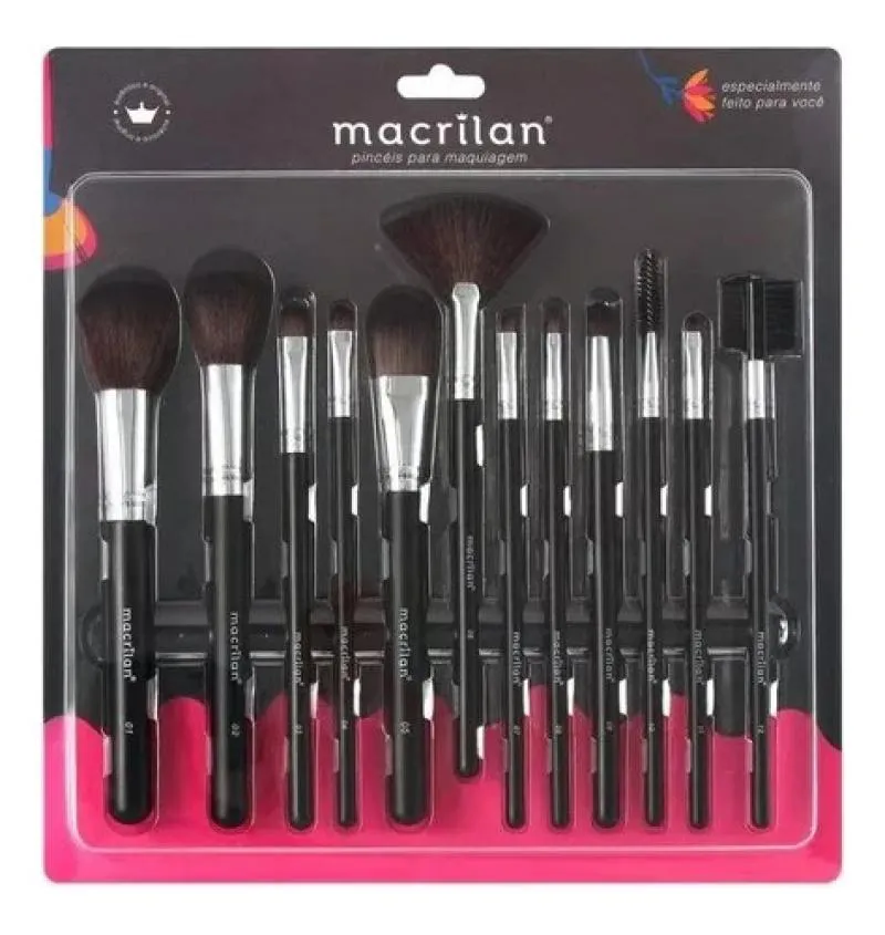 KIT COM 12 PINCéIS PARA MAQUIAGEM - MACRILAN - KP9-1A