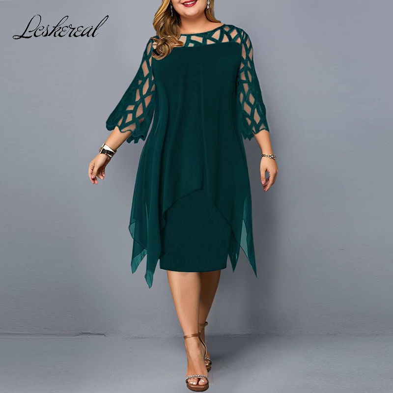 Plus Size Vestidos 4XL 5XL 6XL Lace Malha Sexy Elegante Midi Vestido De Festa Vermelho Preto Verde Roxo Solto Hellow Das Mulheres Clothi