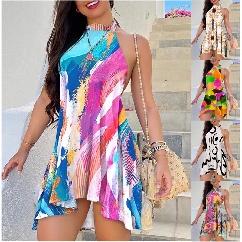 Mini Vestido Feminino Sexy Sem Costas 2023 Verão Casual Estampa Praia Sundress Elegante Vestidos Femininos plus size