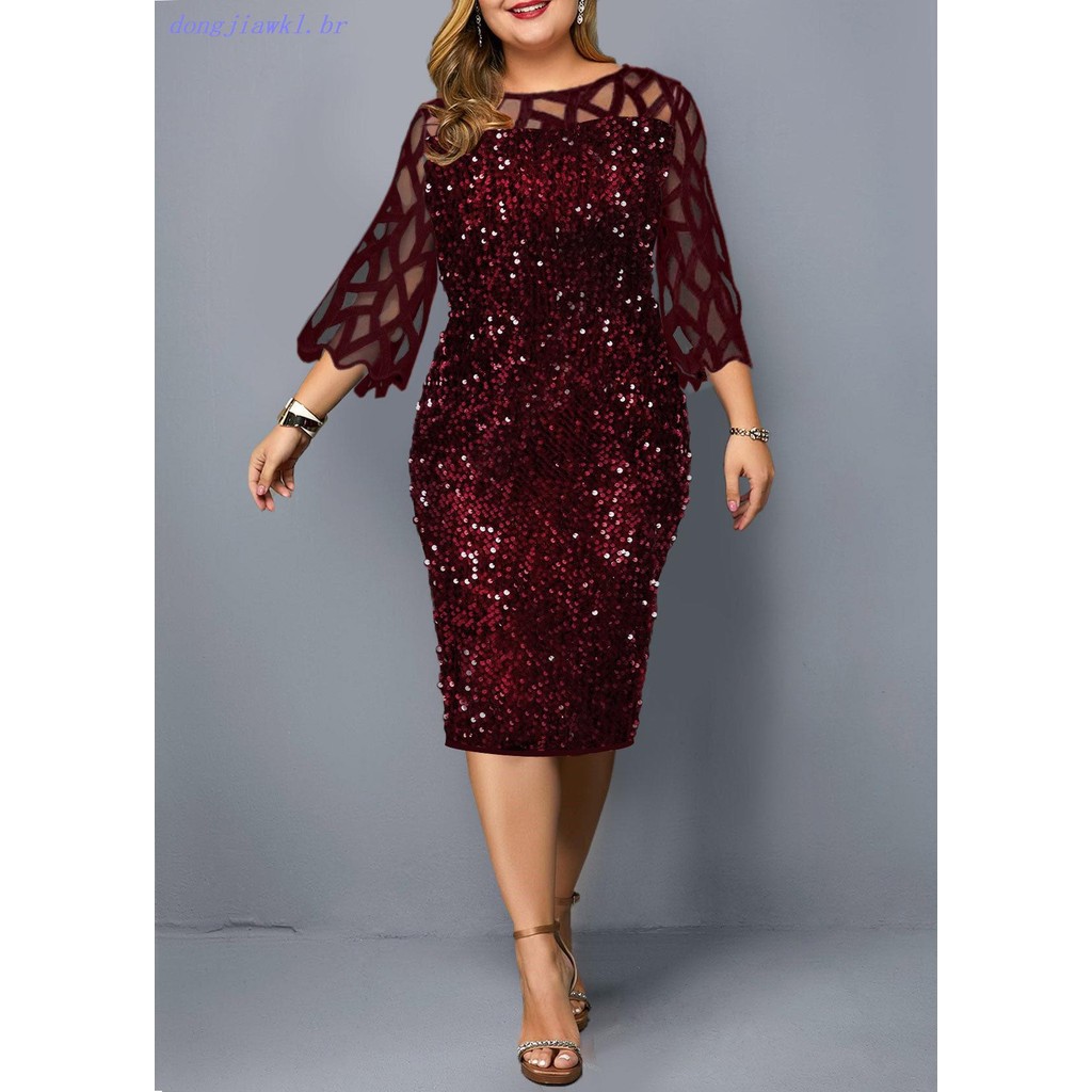 Plus Size P-5XG Vestido Feminino Festa Noite Elegante Temperamento Malha Slim Manga Longa Lantejoulas Vestidos