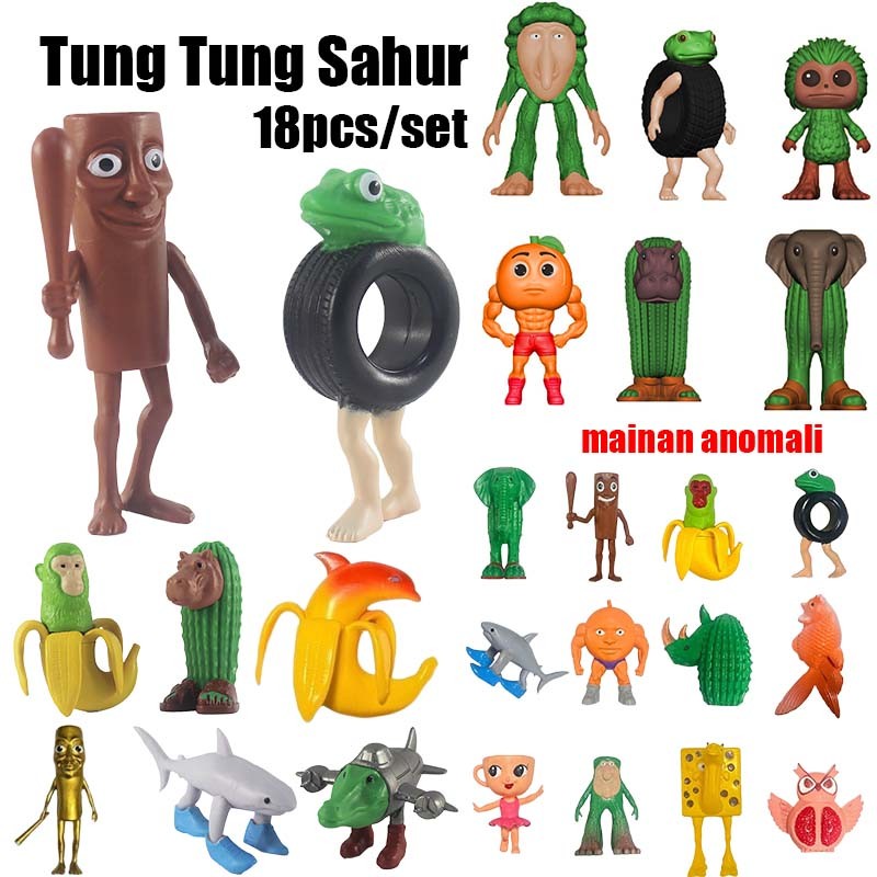 18 Pçs/set Mainan Anomali Brainrot Brinquedos Tung Sahu Tralalero Tralala Action Figure Decoração Boneca Modelo PVC