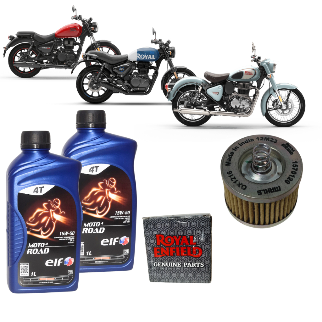 Kit Troca de Óleo - Royal Enfield Meteor 350 / Hunter / Classic 350 - 2 Litros ELF 15W50 e Filtro Original
