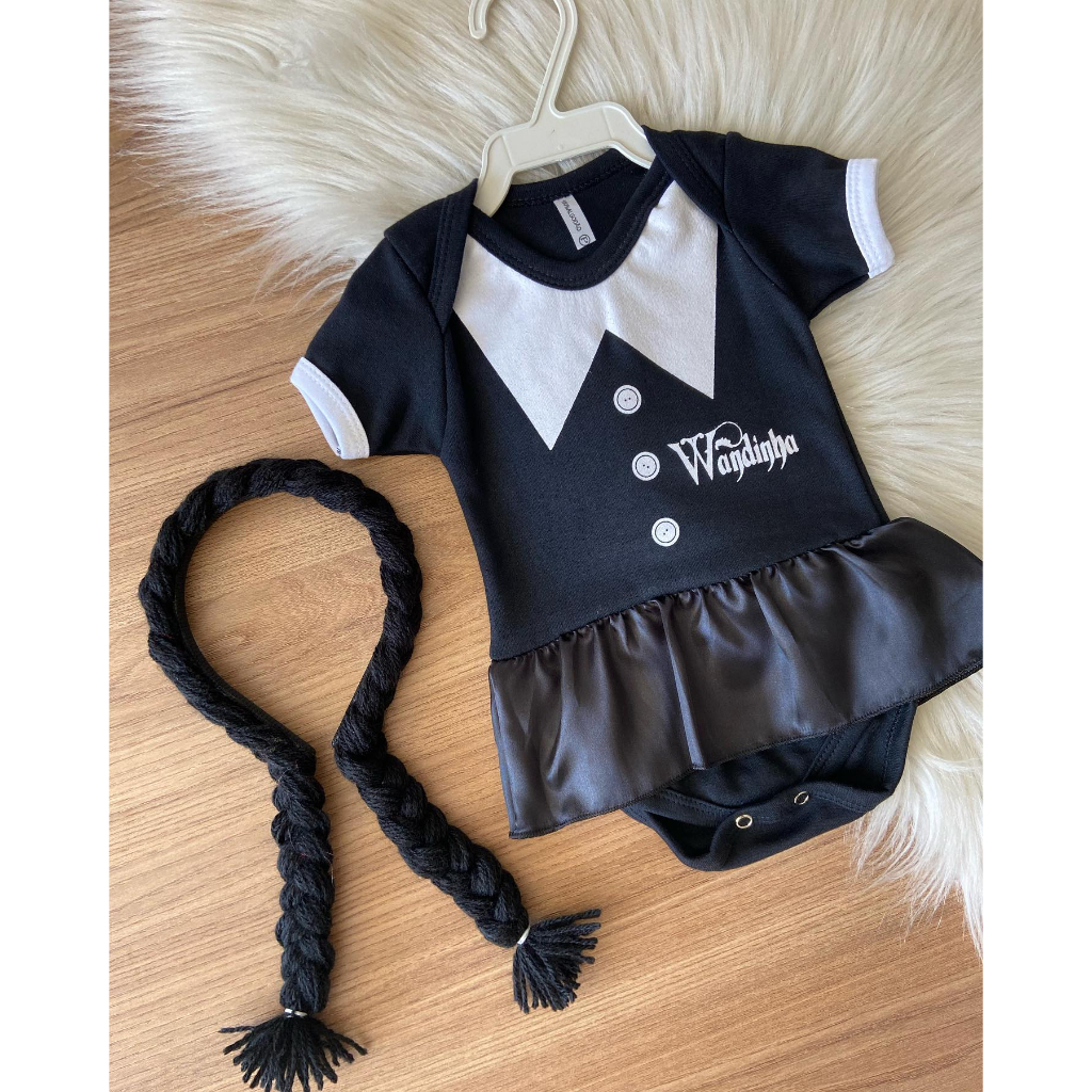 Body Temático Wandinha família adams menina bebê mesversario, fantasia Fantasia Mesversario 100% Algodão