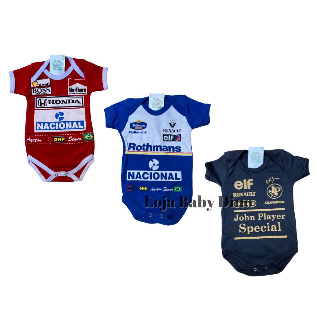 Body Temático Bebê Ayrton Senna Suedine 100% Algodão - Mêsversário / Personagem