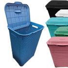 Cesto Organizador De Roupa Suja Rattan 50 Litros Resistente Para Lavanderia Banheiro Com Tampa Preto Arqplast