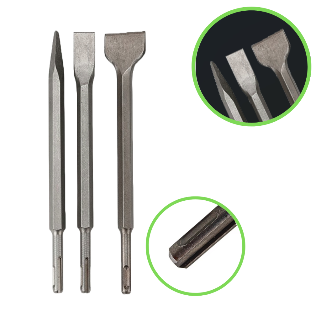 Kit 3 Peças Ponteira E Talhadeiras Para Martelete Sds Plus