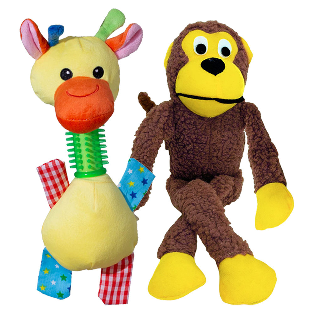 Kit 2 Pelúcias para Cachorro, Macaco 40 cm e Pato 25 cm Mordedor com Apito Savana Pet