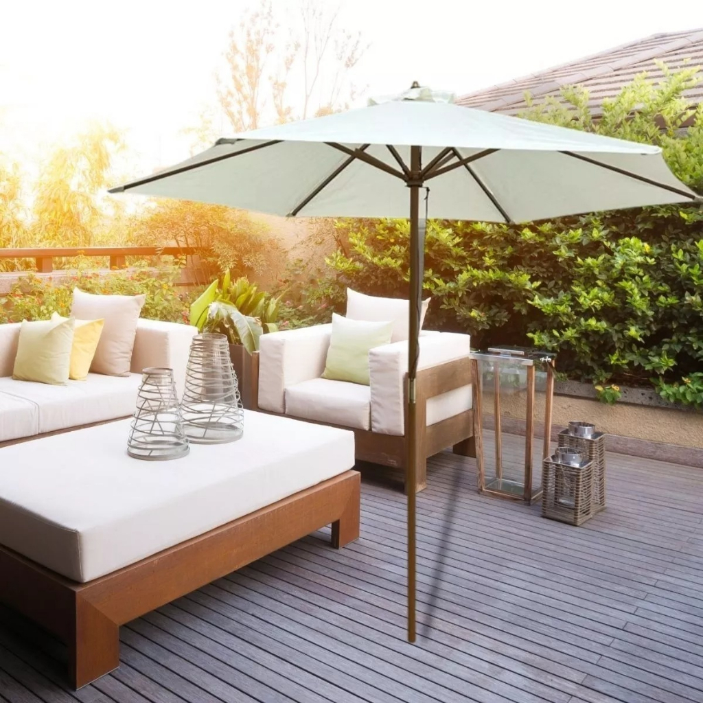 Guarda Sol Ombrelone em Madeira 2,70 m Central Elegante Praia Sombreiro Piscina Restaurante Bar Pescaria Parque Camping