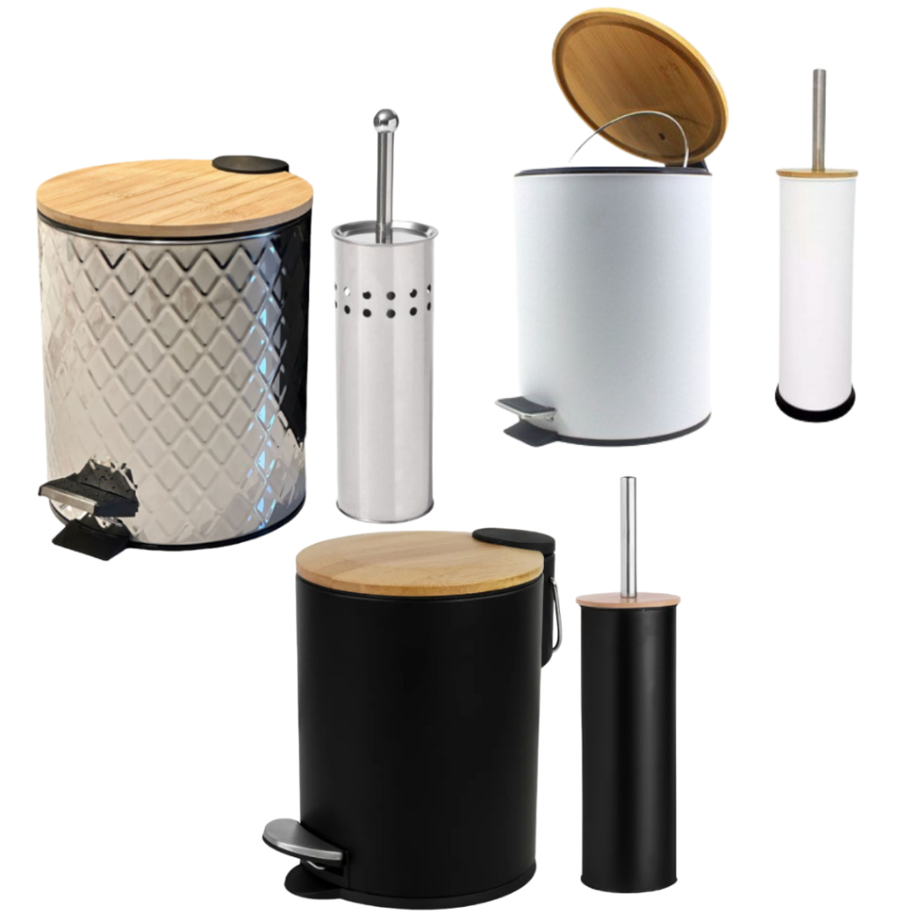 Lixeira Inox C/ Tampa De Bambu 5l C/ Pedal Cozinha Banheiro + Escova Sanitária