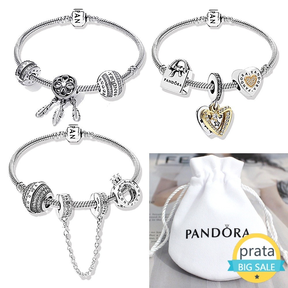 Pandor / A Pulseira Bracelete Pan com Berloque Pingente Charmes De Prata 925 Incluído Conjunto completo de caixas Saco Corrente Macia