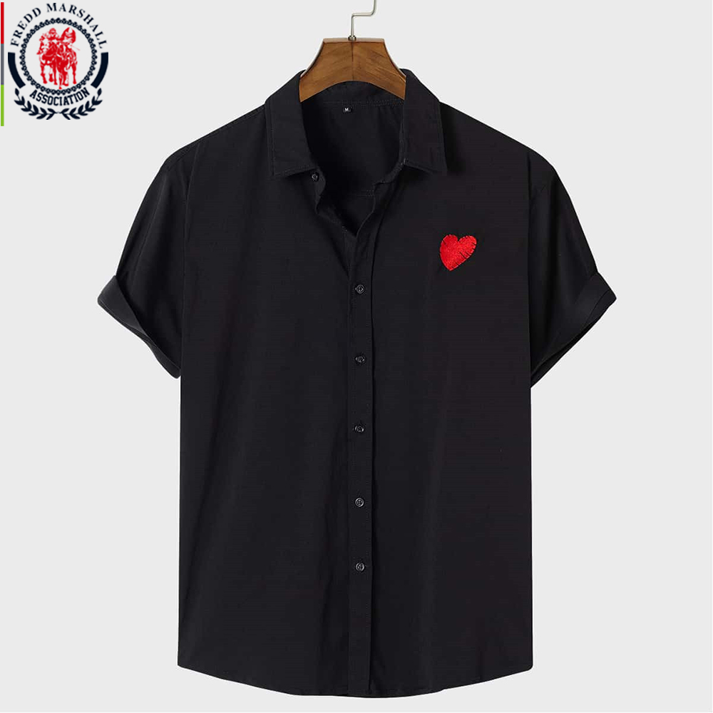 Freddd Marshall 2023 Summer New Solid Color Casual Shirt Homens Camisa De Manga Curta Botão Down Camisas De Vestido Básico Com Bordado Coração 5146