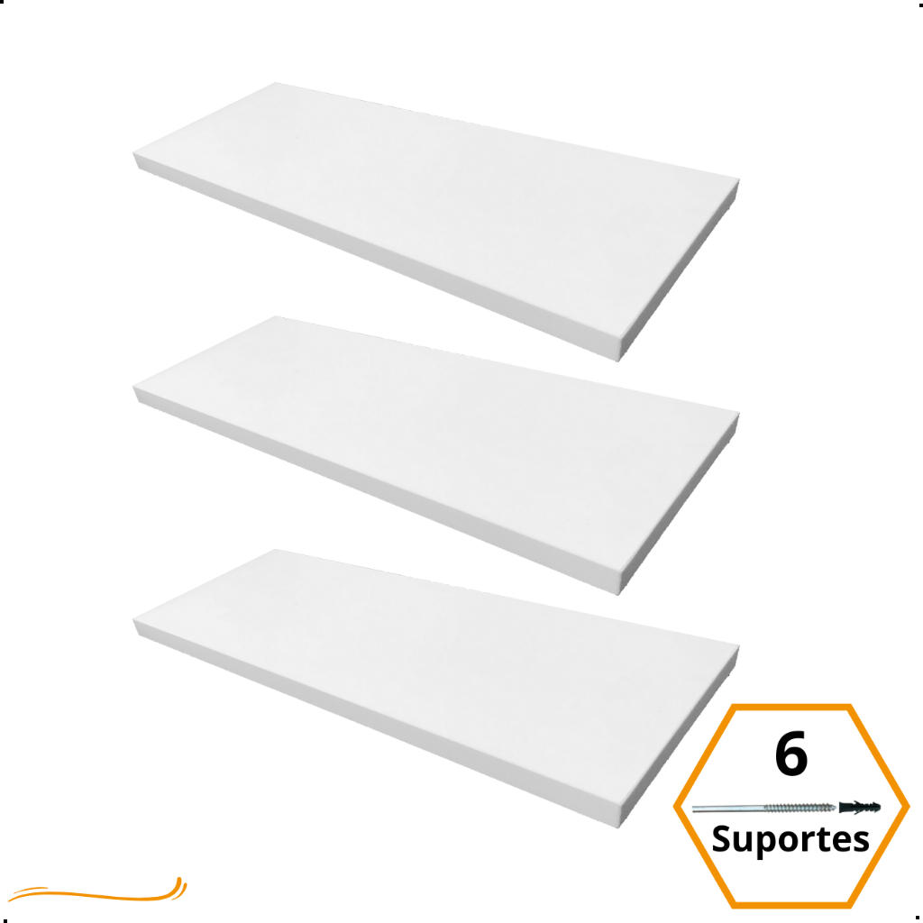 3 Prateleira 40x20 Com Suporte Invisivel Mdf Branco Organização Para Cozinha Banheiro Quarto Dormitorio Sala Lavabo Area Gourmet Escritorio Casa Lavanderia Kit Jogo Parede Decorativa Tabua 40cm Madeira Flutuante 40 Cm x 20 Cm Branca
