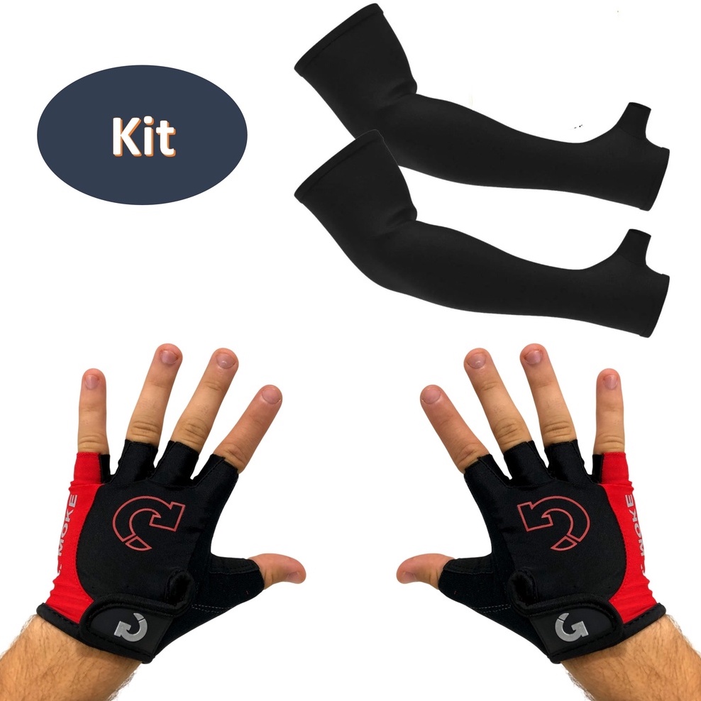 Kit Par Manguito Manga Proteção Solar UV50+ Esportiva Ciclismo Bike + Luva Meio Dedo Luva Gel Ciclista Meio Dedo Bicicleta