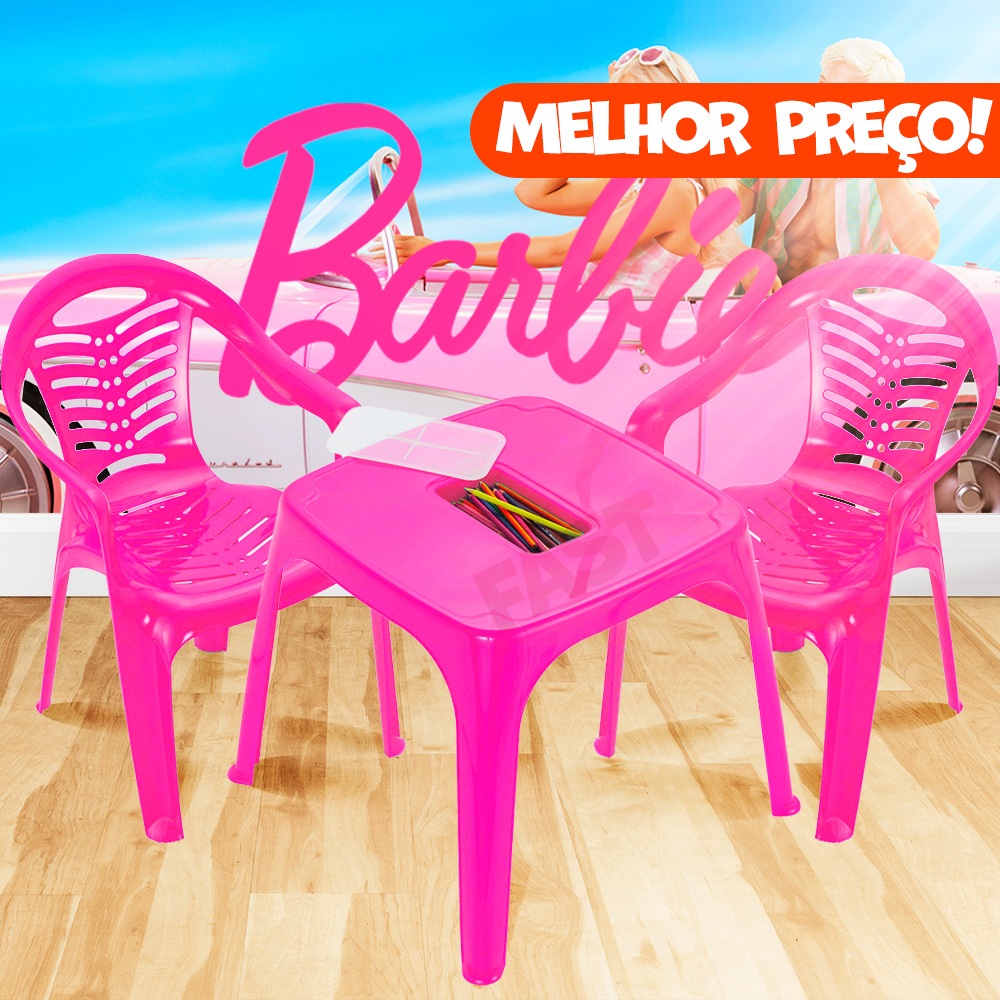 Kit Mesinha e 2 Cadeirinhas Brinquedo Mesa e Cadeira Educativa Infantil Com Estojo Resistente Barbie e Homem Aranha