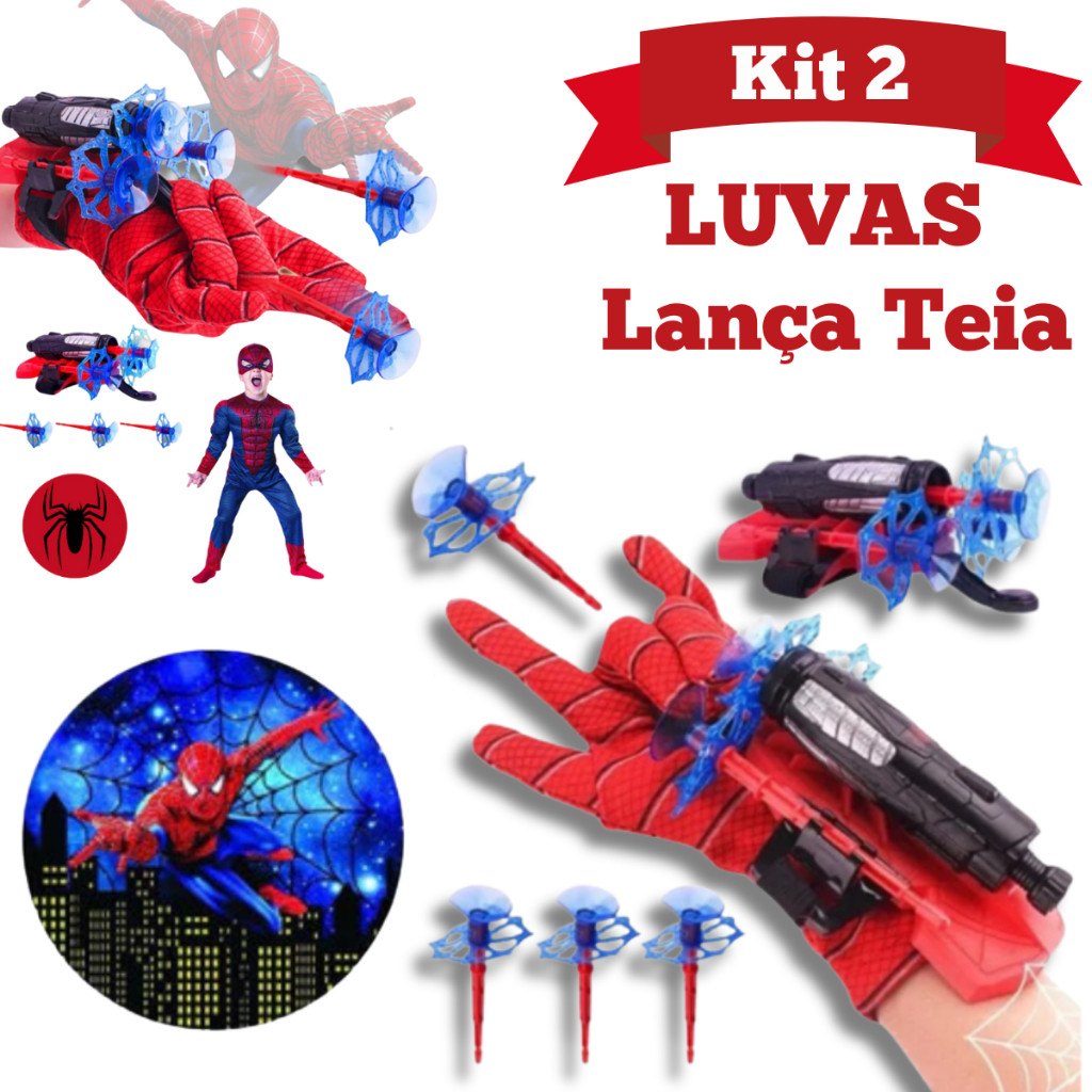 Kit 2 Luvas Homem Aranha Infantil Lançador de Teia Dardo Brinquedo Spider Man Menino e Menina