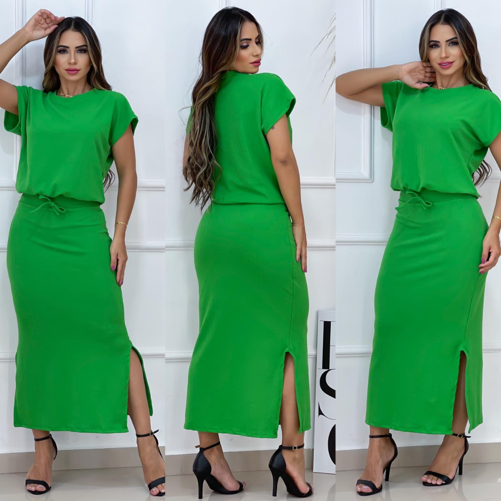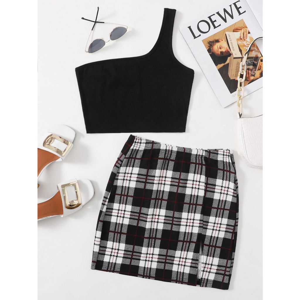 Conjunto Feminino MIni Saia Cintura Alta + Cropped Ombro só Moda Gringa