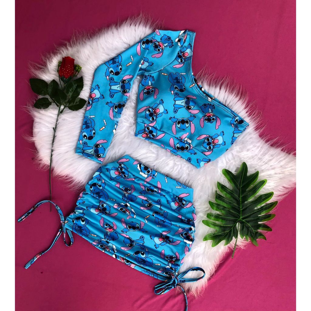 Conjunto Feminino Asthetic lilo & stitch saia drapeada e cropped mula manca lilo & stitch ombro só estilo moda gringa