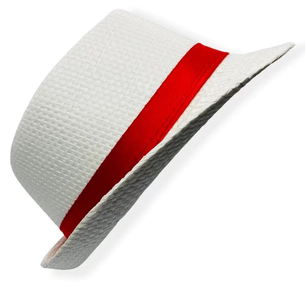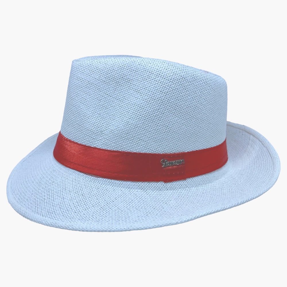 Chapéu Malandrinho Branco Com Fita Vermelha Modelo Panamá
