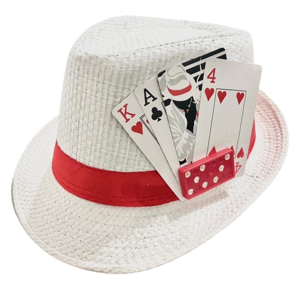 Chapéu Zé Pilintra Branco com Fita Vermelha Masculino Malandro Unissex