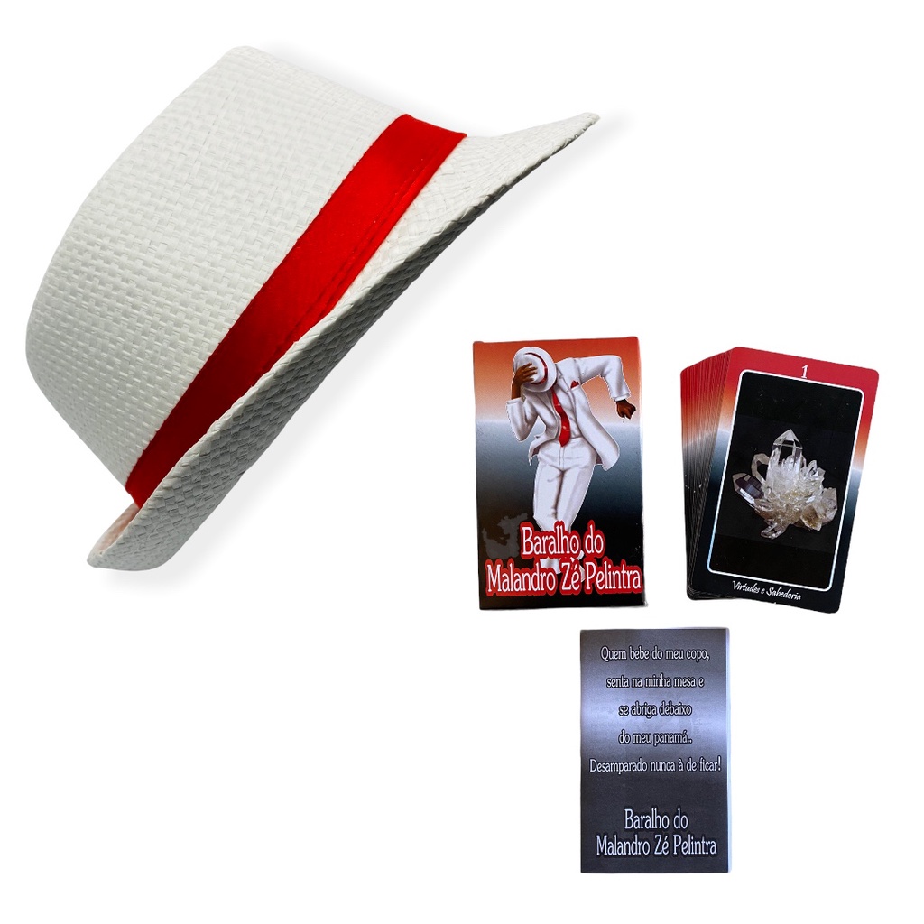 Kit Baralho Malandro Zé Pilintra + Chapeu Com Fita Vermelha Ze Pelintra