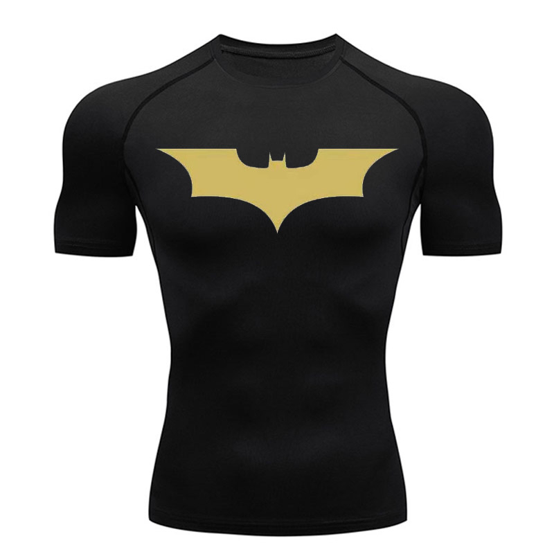 Camisa De Compressão Homens Manga Curta Ouro Batman Preto Camiseta De Corrida Esportiva Quick Dry Breathable Summer Workout Clothing