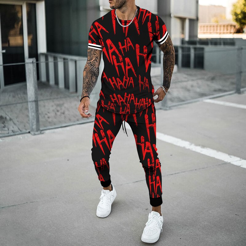 Homens De Verão HAHA Carta Camisa De Manga Curta Calça Masculina Essencial Roupa 3D-Print shirt Sets Breathable T-Calças