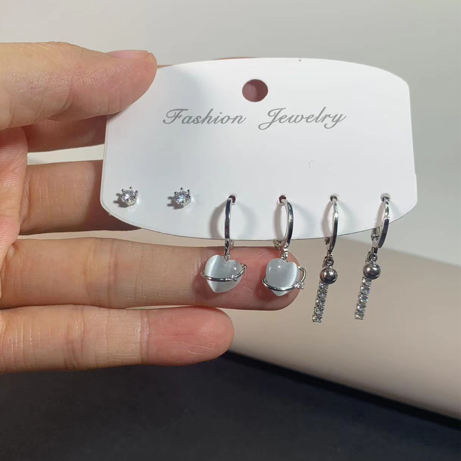 Conjunto de Brincos de 6 peças Brincos com argolas estroboscópicas Brincos com argolas de argolas de coração Opala Love Pendant Hoop