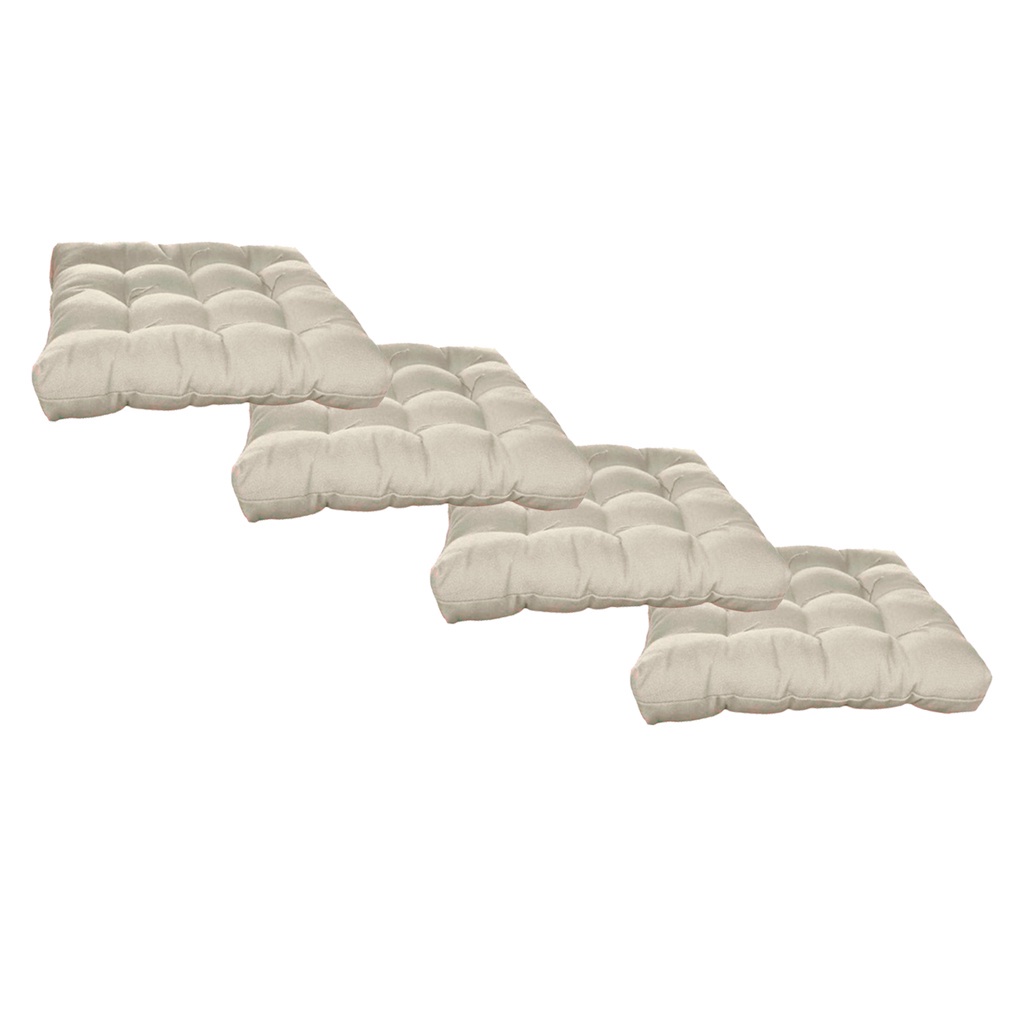 Kit 4 Almofadas Decorativa Futon Assento De Cadeira Sofa Pallet Banco Bege Cheia Confortavel Macio C/ Fitas De Amarrar 40x40CM