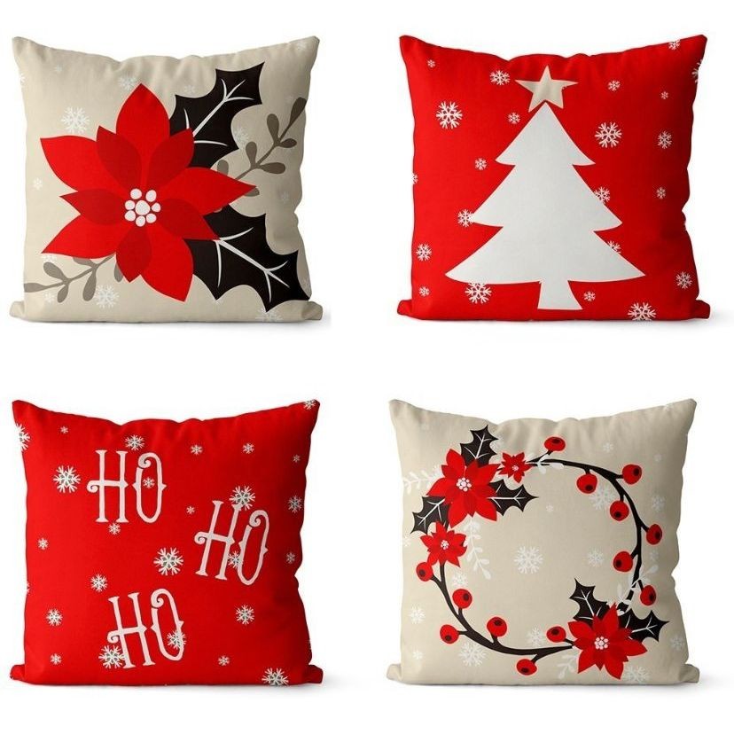 Kit 4 Capa De Almofadas Decorativa Sofá Feliz Natal Noel 45x45
