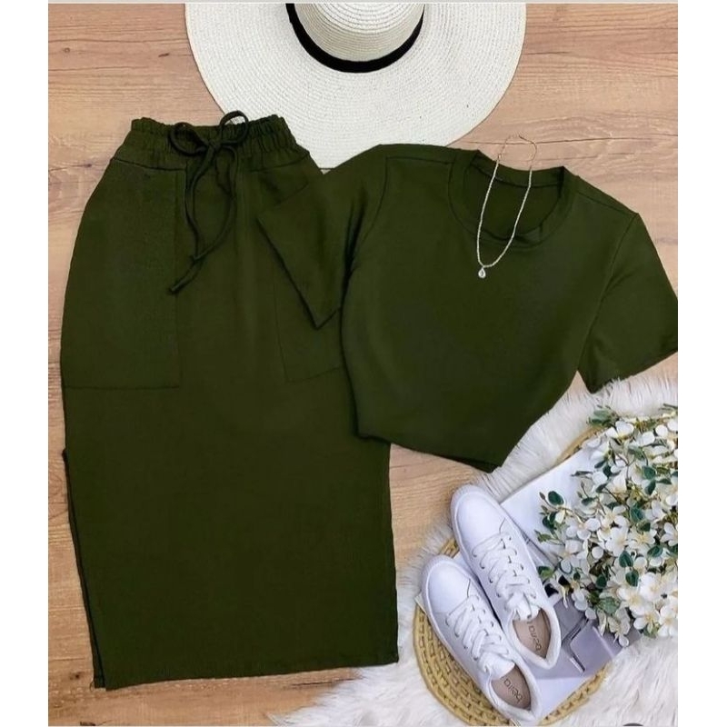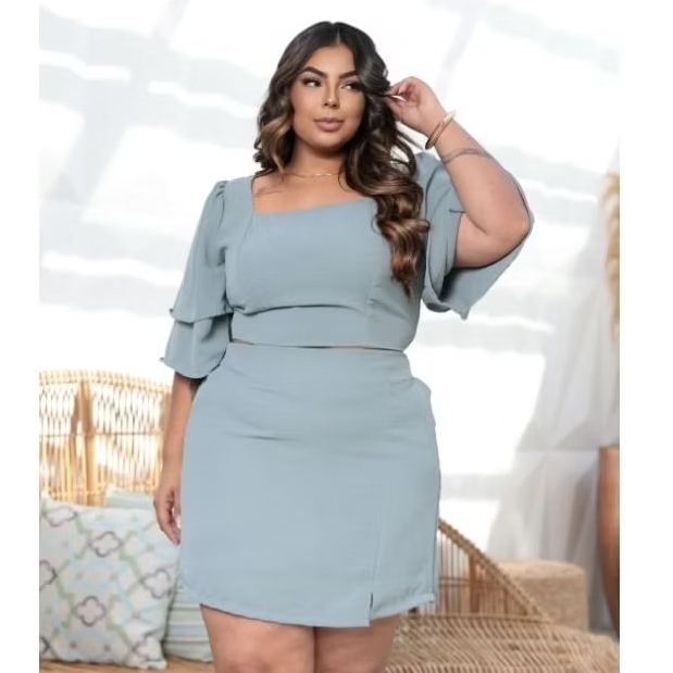 Conjunto Feminino Plus Size Saia E Blusa Plu Sise Cropped Manga Curta Até G3