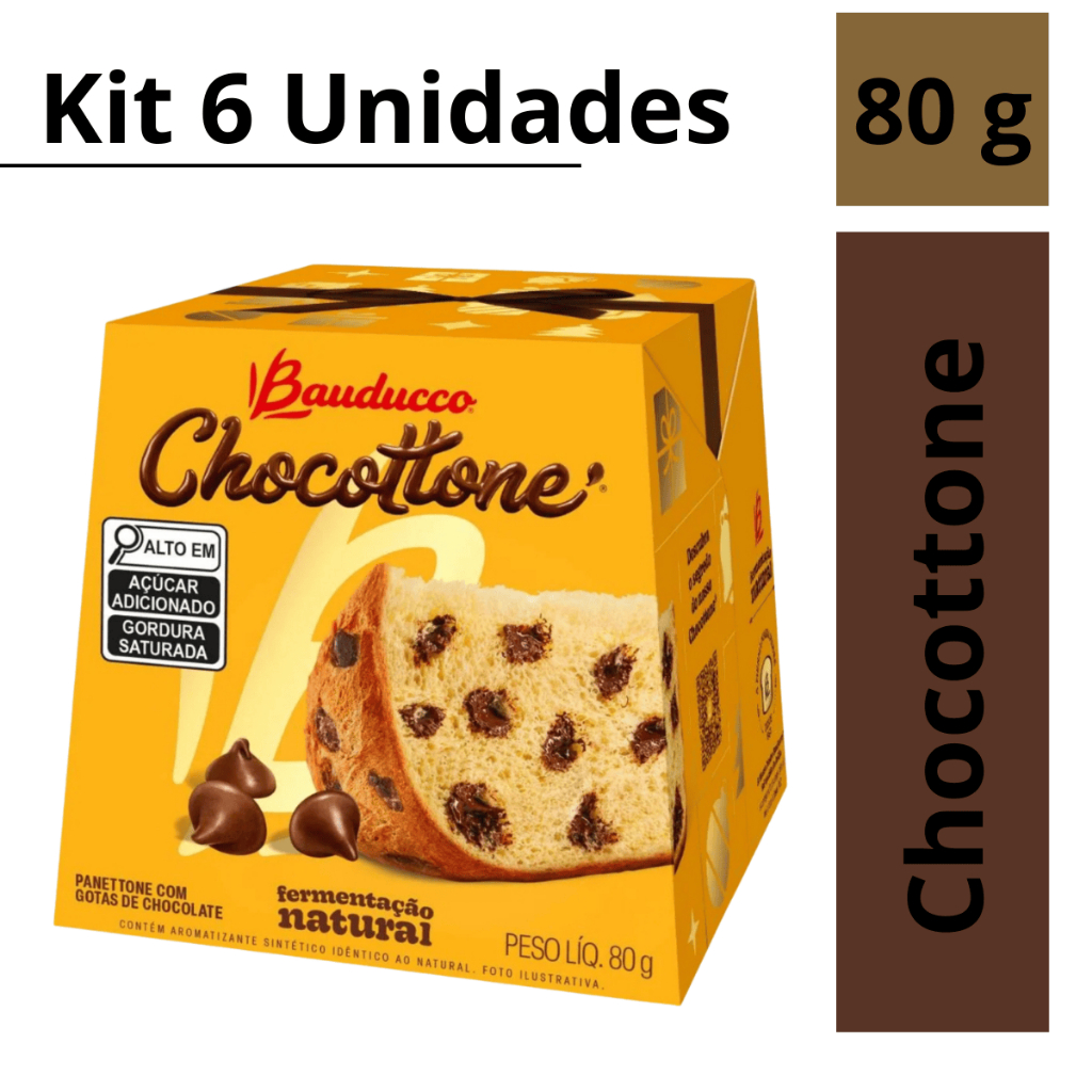 Kit 6 Mini Chocottone Bauducco Gotas de Chocolate 80g