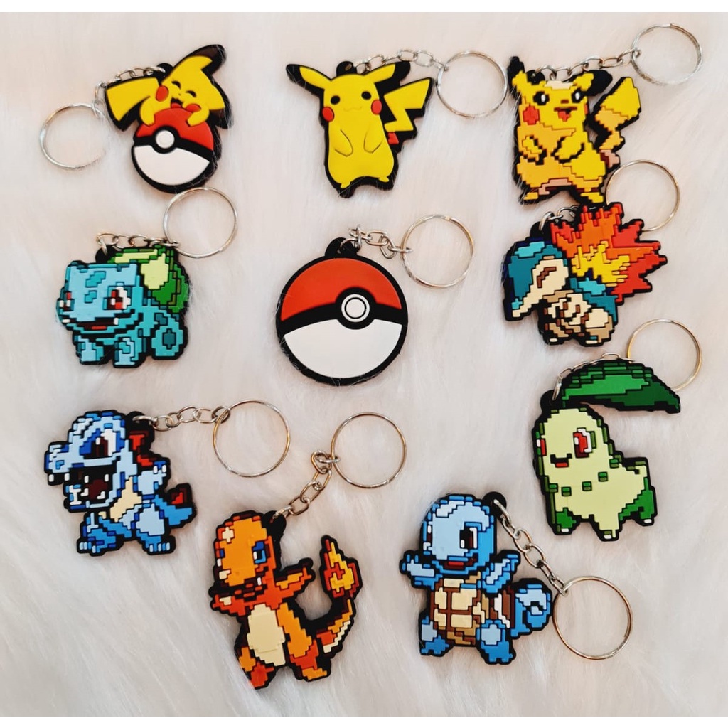 Chaveiro Emborrachado Pokemon/ Pixelados - Pikachu/Squirtle/Bulbasaur/Charmander/Totodile/ Pokebola