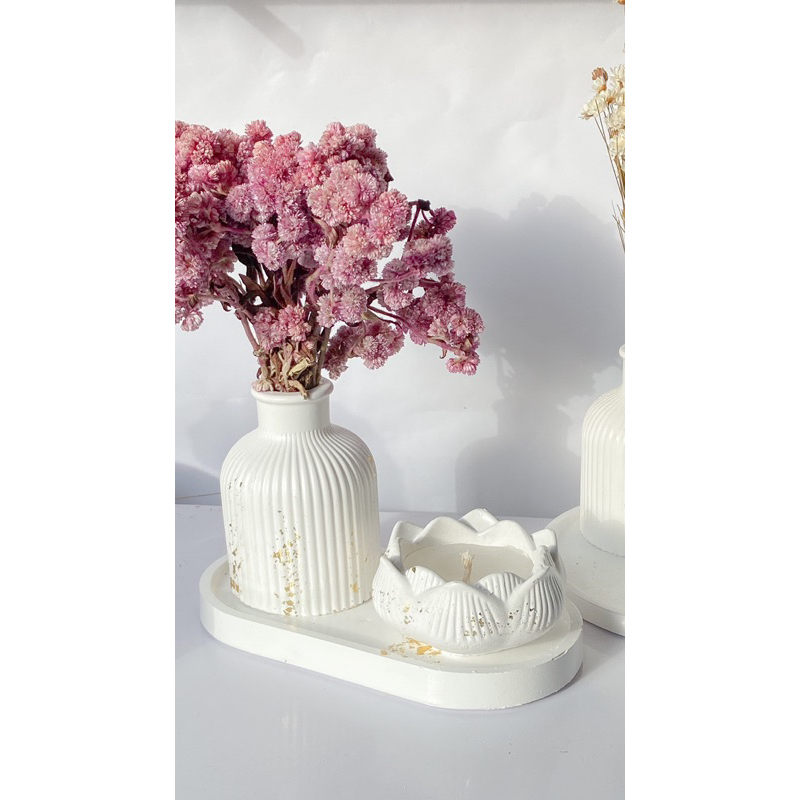 KIT DECORATIVO 3 PEÇAS FLOR DE LOTÚS - Bandeja Oval + Vaso + Flor com Vela Perfumada , Sala, Quarto, Cozinha e Banheiro