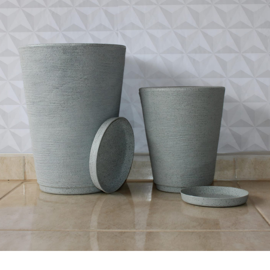 Kit 2 Vasos Planta flor Texturizados Redondo Decorativo de Polietileno Cone N°1 e N°2