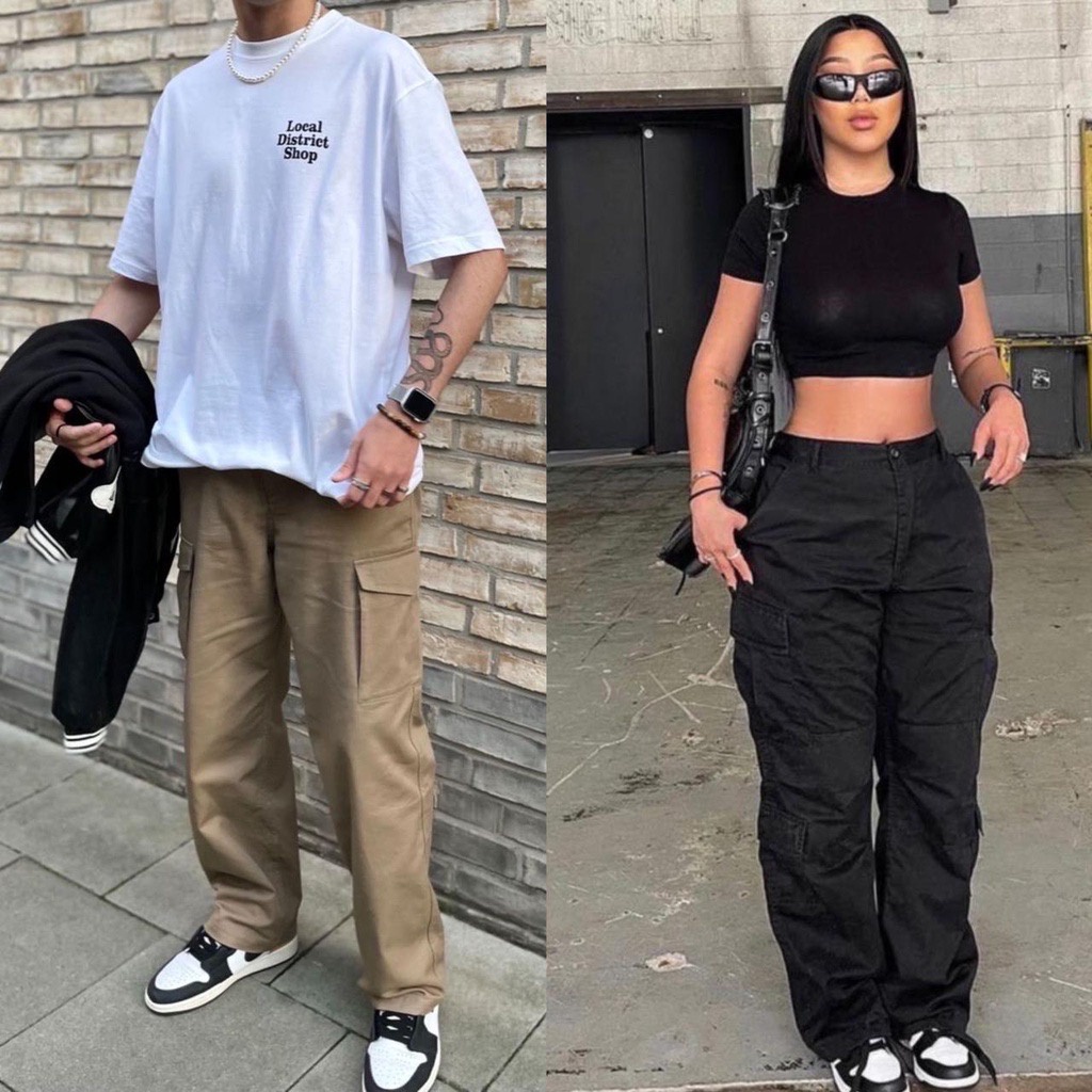 Calça Cargo Jogger Estilo Gringa Masculina e Feminina com Bolsos Laterais Larga