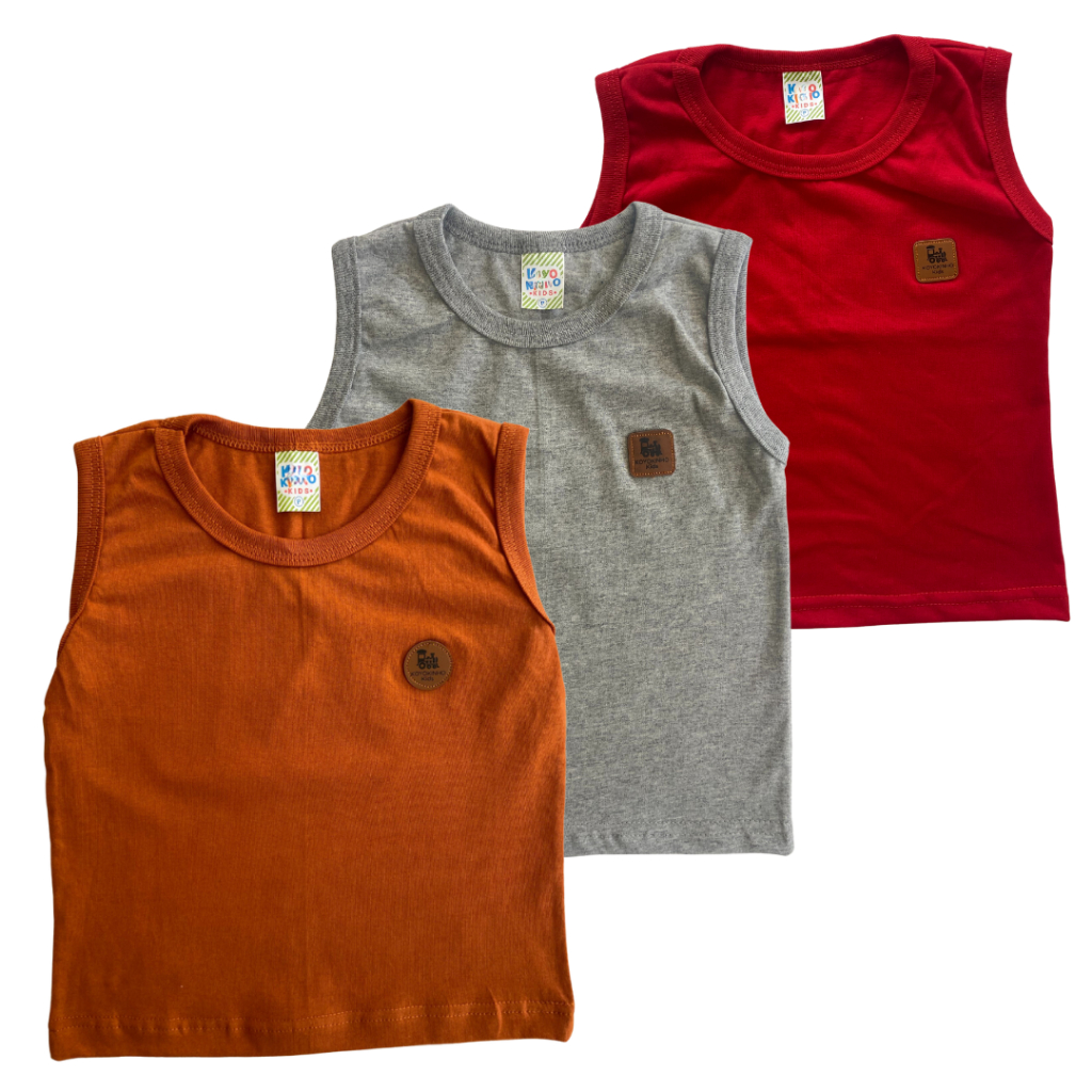 Kit 3 Camiseta Infantil Menino Regata Básica Lisa Verão Tamanho 1 – 10 Anos