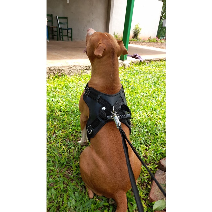 Peitoral Coleira Cachorro em couro com alça e guia com amortecedor Adestrar Pet Pitbull Pastor Rottweiler
