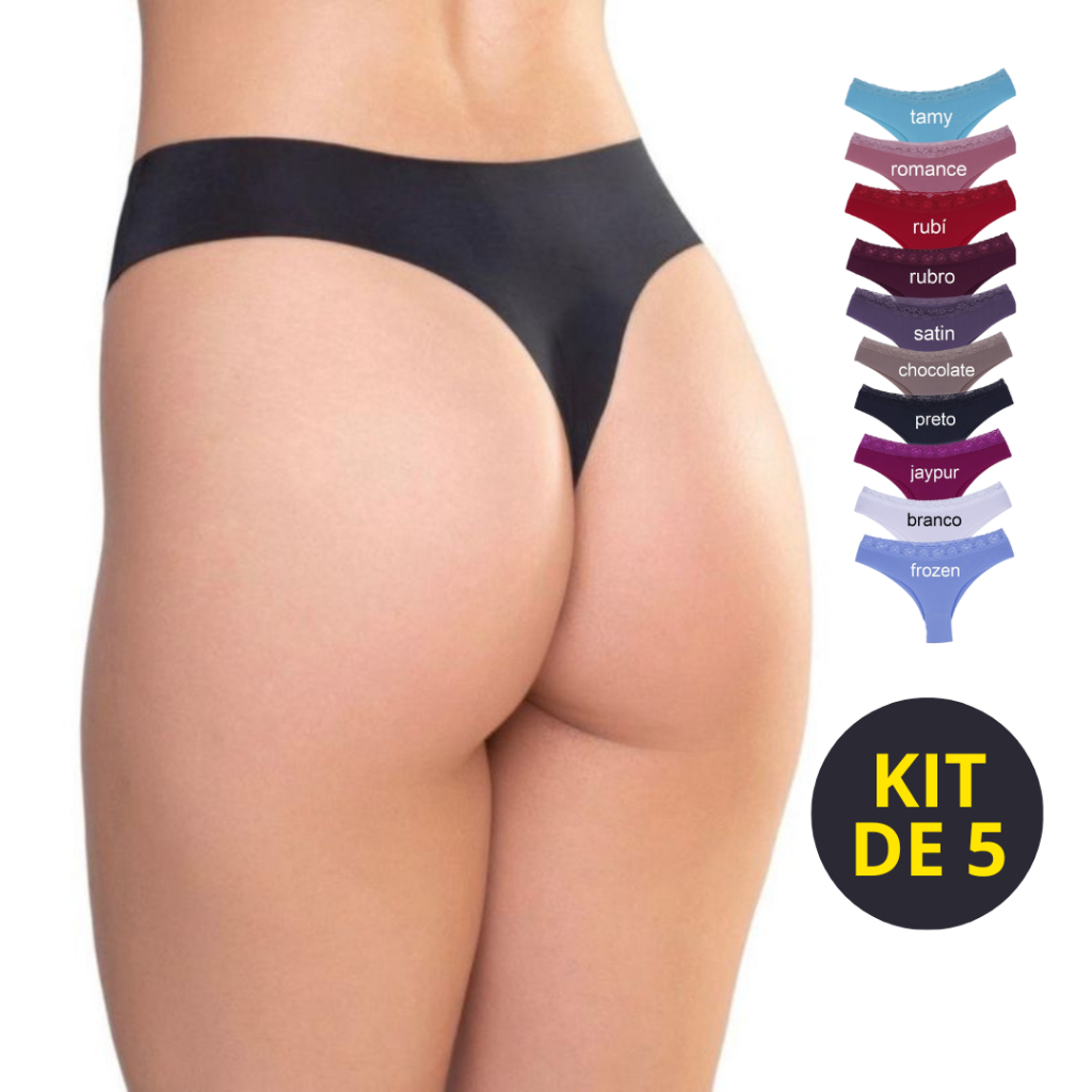 Kit com 5 Calcinha Fio Dental Sem Costura Sexy Lingerie Feminina Corte a Laser Conforto Moda Intima Feminino