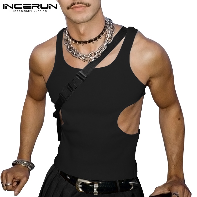INCERUN Camiseta Regata Masculina Casual Sem Mangas De Cor Lisa Slim Fit