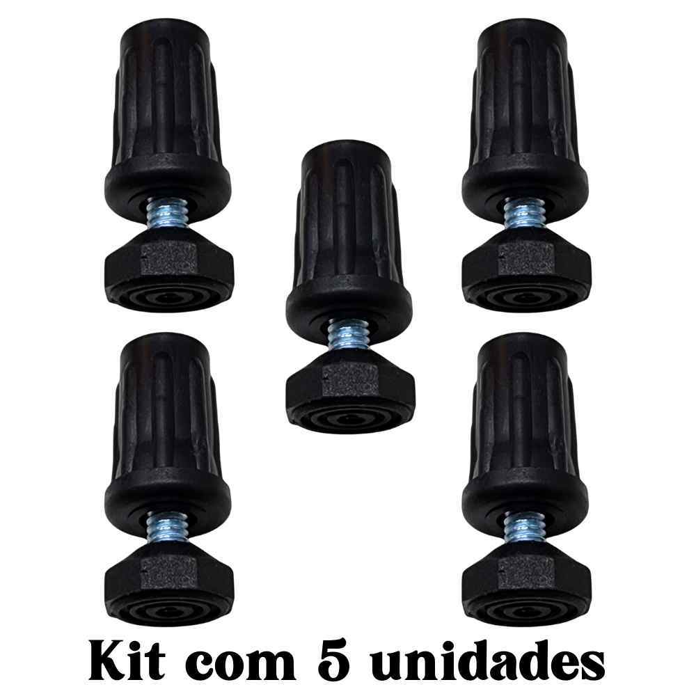 Bucha Rosca para Tubo 3/4 e Pé Nivelador Rosca 1/4 – Kit com 5 Unidades