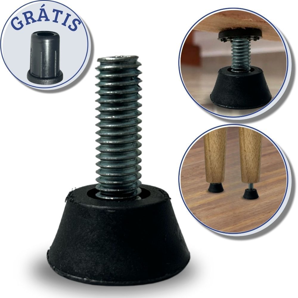 Kit com 12 Sapata Nivelador Pé Regulável 1/4" com Bucha Cama Móveis Mesa Pezinho Escrivaninha Vaso Cadeira Puff