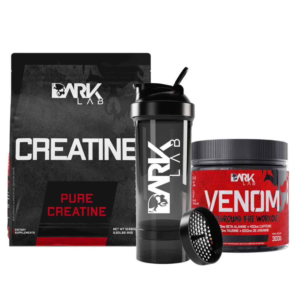 KIT Creatina Monoidratada 100% Pura 1kg + Venom Pré Workout 300g + Coqueteleira Premium 700ml - Dark Lab