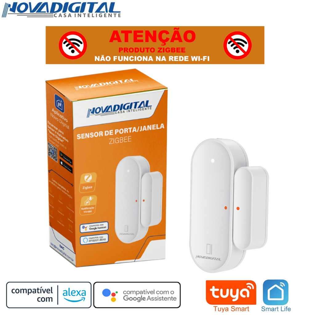 Sensor de Porta e Janela Smart Zigbee Tuya Nova Digital Compatível com Alexa Google Home Z2M
