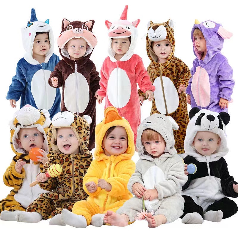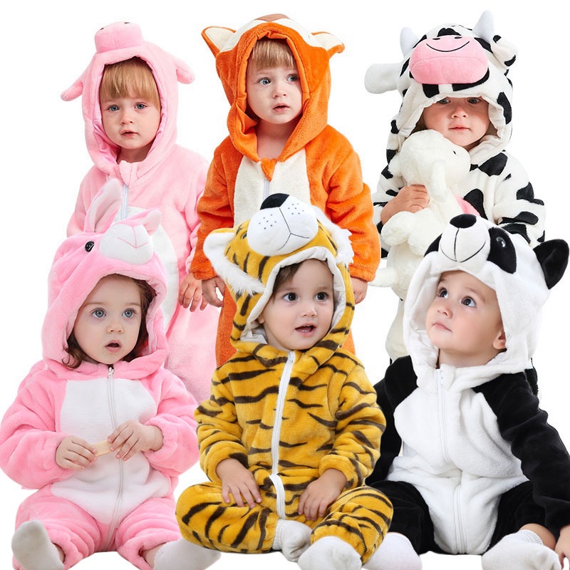 Macacão Infantil De Flanela Com Manga Comprida/Desenho De Tigre/Panda Para Bebês/Recém Nascidos/Menina Ou Menino
