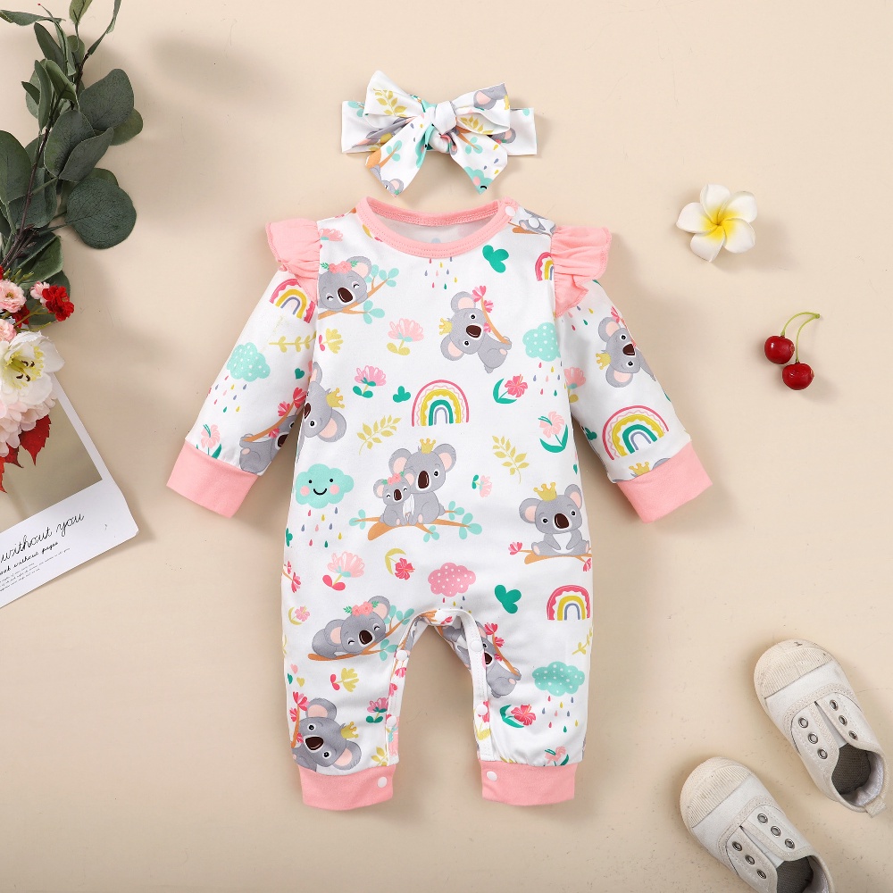 BA Macacão Infantil Feminino De Algodão Com Estampa De Cervo Para Recém-Nascidos/Bebês/Meninas